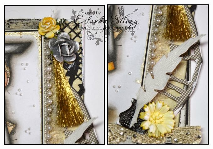 AND I found a big gold tassel hidden in my stash too and who would have figured that years later it would have come in handy?! And I tell myself I should purge my crafting supplies!! What am I thinking? LOL!! The feather and ink well are Tim Holtz dies which I added some crackle paint to.