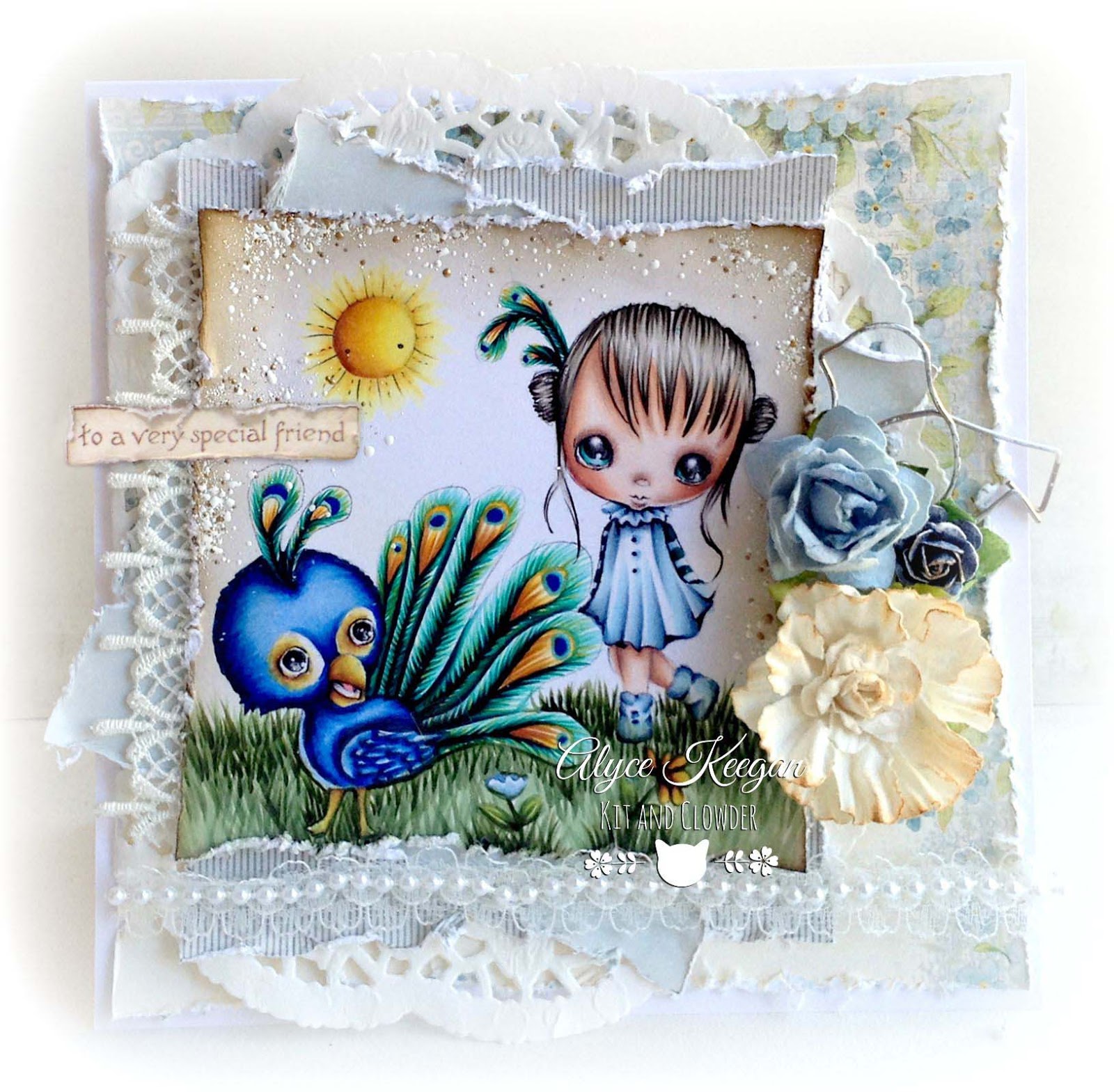 Hi everyone! It's Alyce here! This week we are looking at Celebrations on the blog and I'm celebrating a special friends birthday with this Peacock card! :D Her favourite animal is the Peacock so I thought this cute image by Ppinky Dolls with these beautiful Pion designs papers would be perfect.