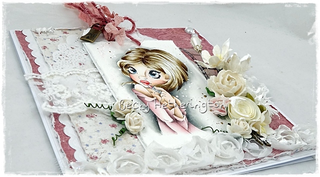 The image is Makeup Time from Saturated Canary and has been coloured with distress reinkers to match the Coffee In The Arbour papers from Maja Design. I have used my Tim Holtz tool to distress the edges of the paper.