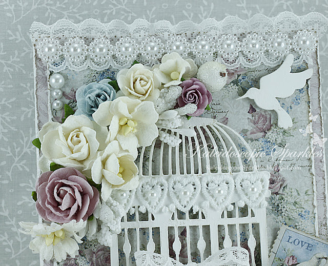1. Dear Karen, your creations is so gorgeous again with all these fantastic laces, pearl trims and flowers. I love the birdcage and the little charms, the papers are great too.