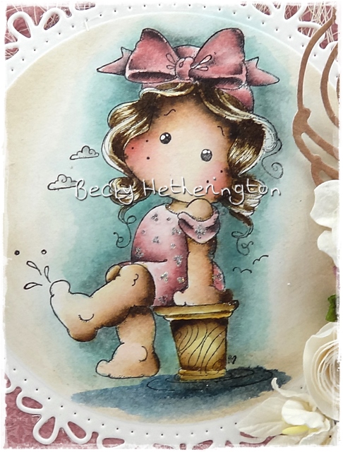 Becky fantastic design and beautiful flower- and lace arrangement. The little Tilda looks so sweet.