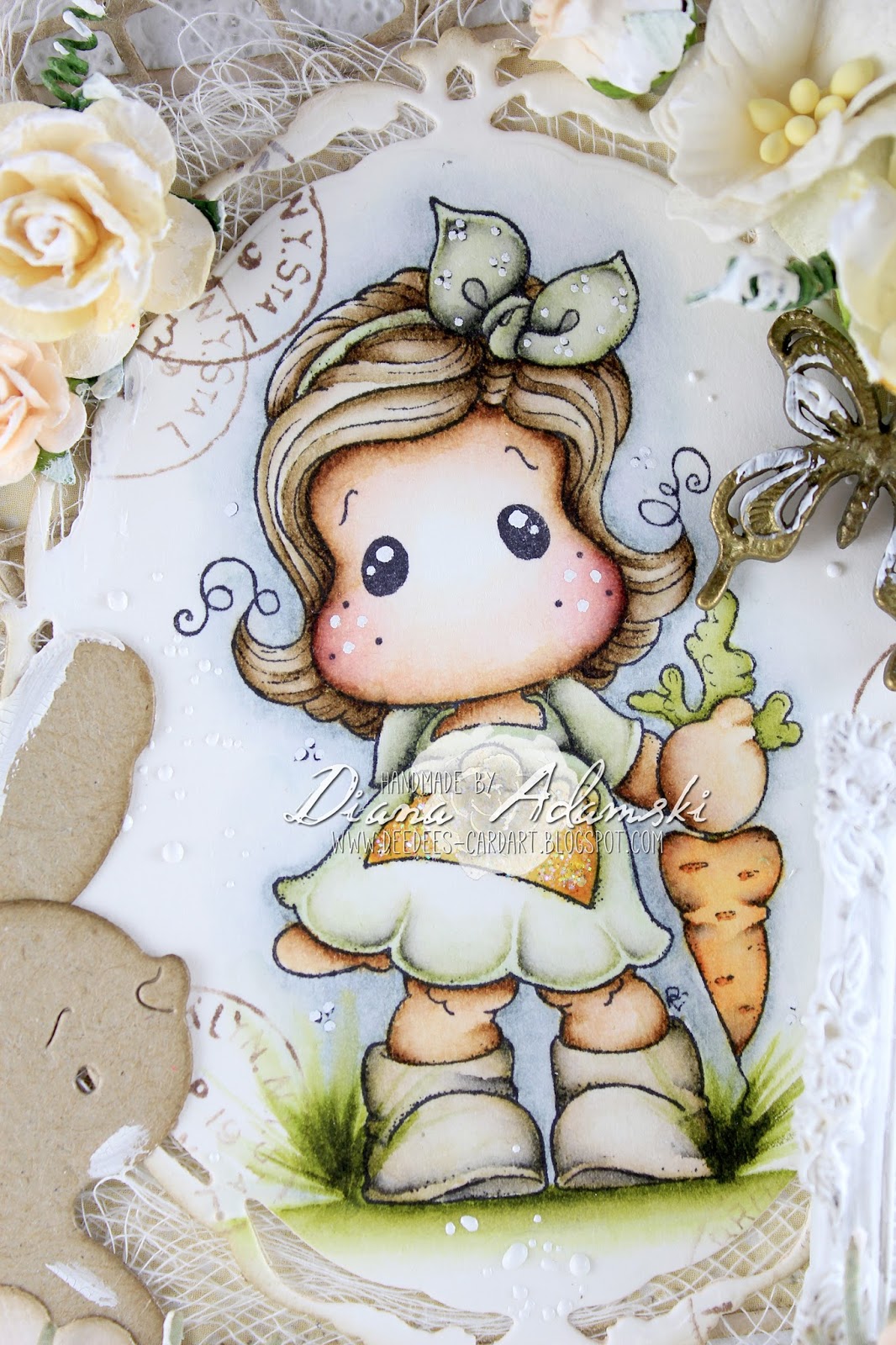 Diana is here! This week is a special week you know! The DT Members are showing you some Tipps & Tricks. So I thought I want to share with you all how I made my cards. And how to do it better than with a video. In this speed video I show you, how I made my first Easter card for this year. Stamp is Tilda Picking Carrots and DooHickey Dies are by Magnolia and papers are from Maja Designs Vintage Spring Basic Collection. I really hope you like this video!